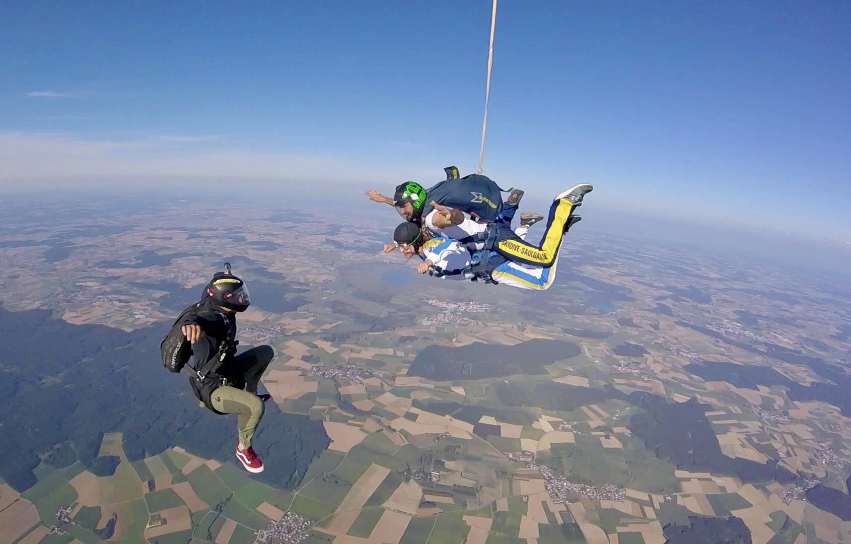 Nach individuellem Briefing steigen wir gemeinsam in Bad Saulgau in einen Flieger. Nach rund 20 Minuten erreichen wir auf 4.000m und können bei guter Sicht den Bodensee und die Alpen sehen.