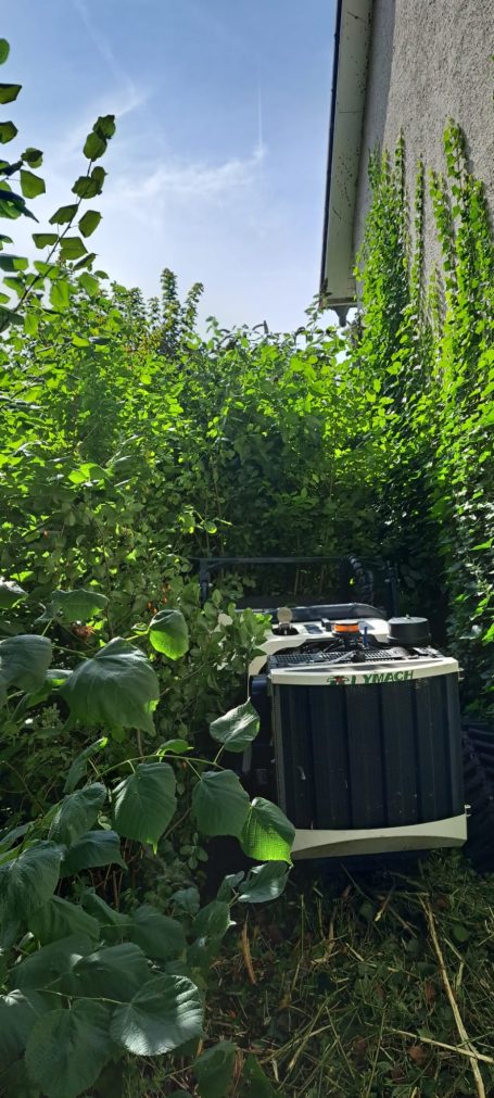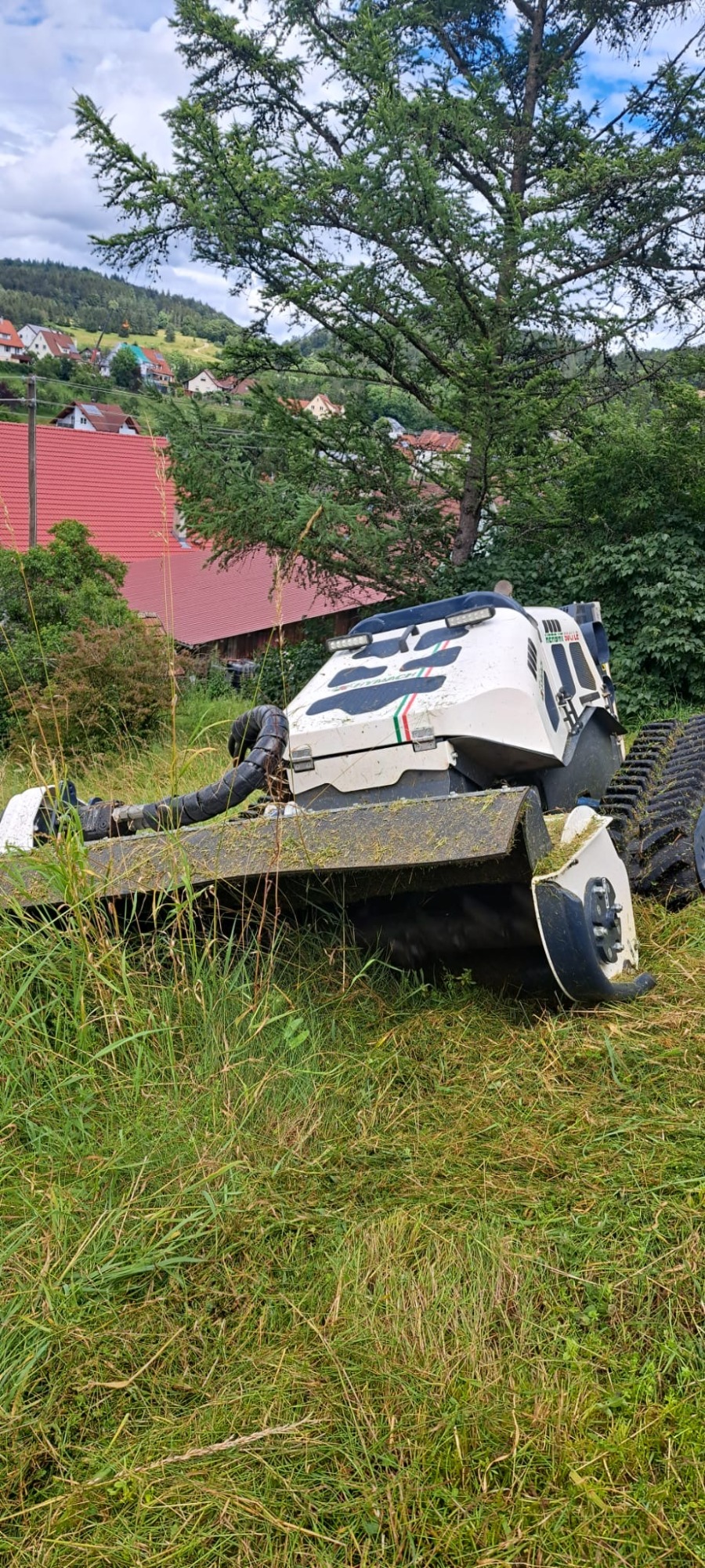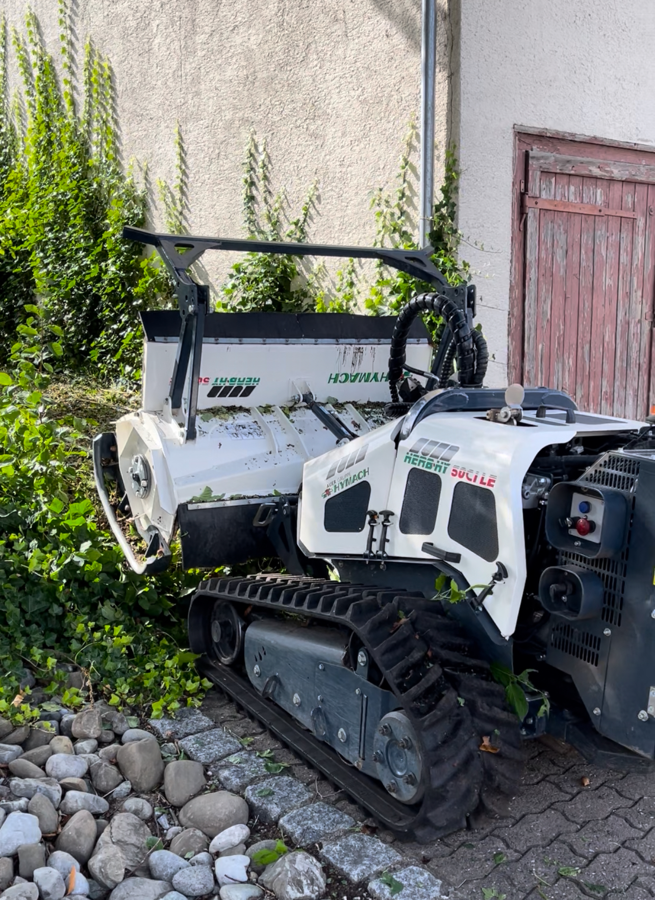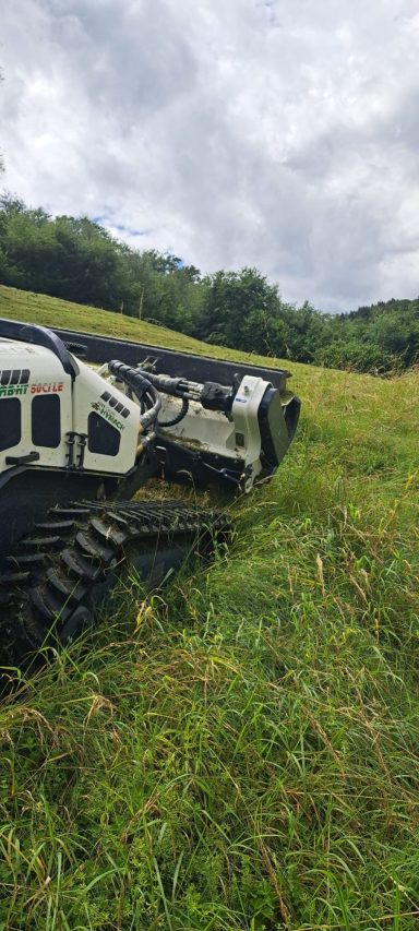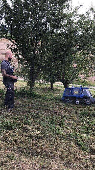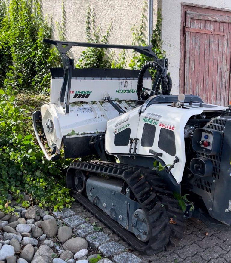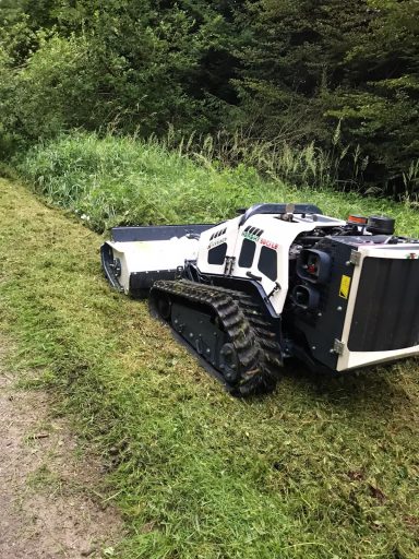 Wenn das Gelände zu steil, zu uneben oder zu verwildert ist, kommt unsere Mähraupe zum Einsatz.