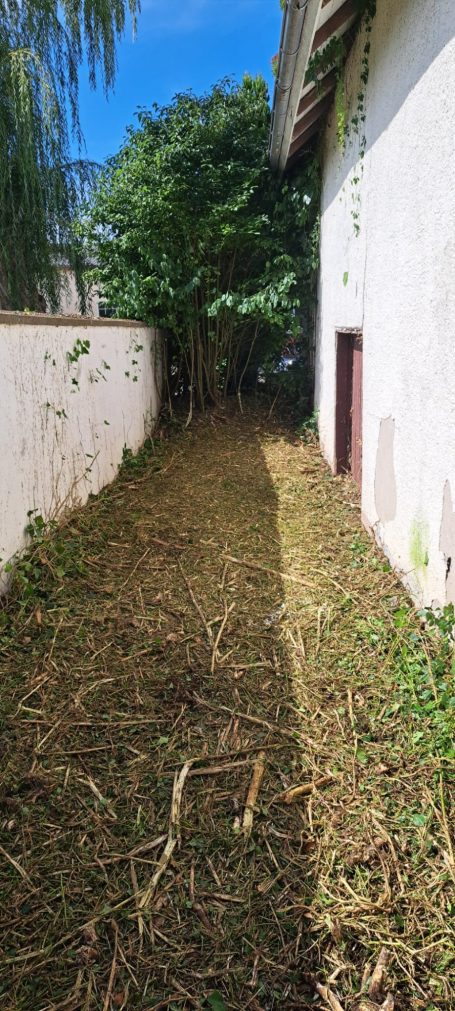 Hier sehen Sie im linken Bild eine verwucherte Grünfläche und rechts das Endergebnis.
